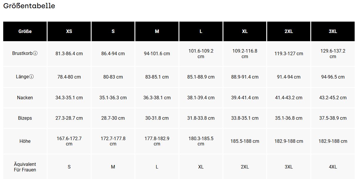 Größentabelle